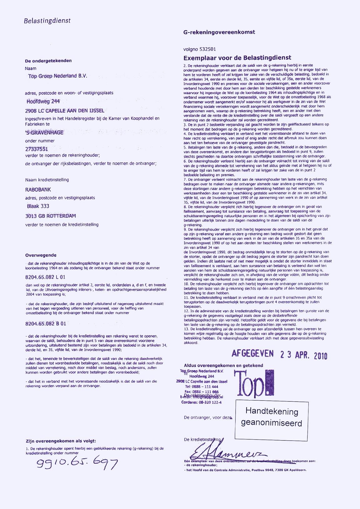 G-rekening Top Groep Nederland